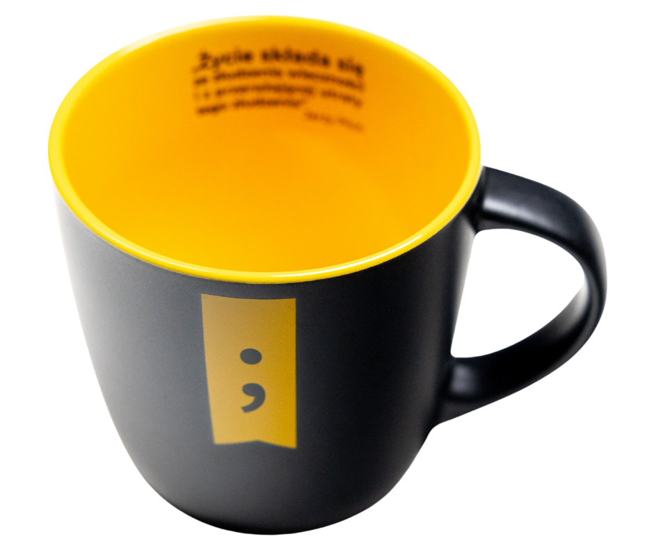 Ceramiczny kubek w kolorze czarno-żółtym z nadrukiem
