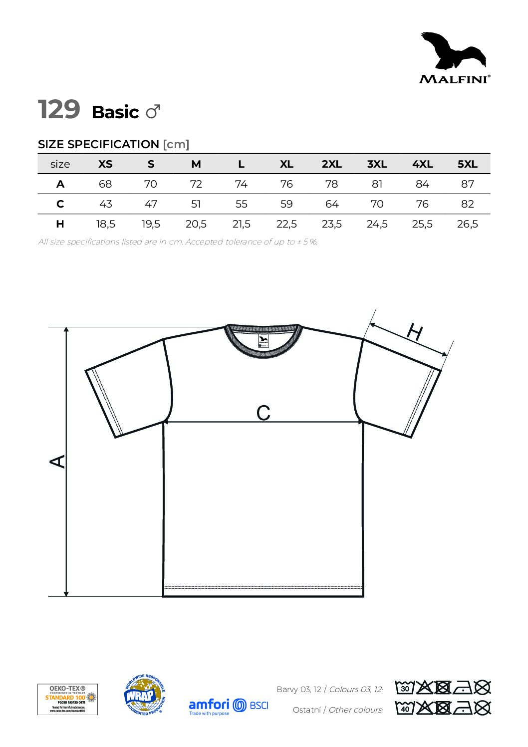 Malfini Adler Koszulka męska Basic 129, bez szwów bocznych. Koszulka posiada wąską lamówkę z dzianiny ściągaczowej 1:1 z dodatkiem 5 % elastanu, taśmę wzmacniającą na ramionach oraz wykończenie silikonowe. Prać w: 40 °C.
